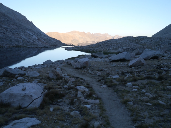 The night was a good reminder of my life at home with young kids. Neither Green One nor I fell asleep easily, even as the night grew colder. I finally dropped off somewhere around midnight, having drained my cell phone battery down to 5% as I listened to my audiobook. Our fellow hikers were pretty quiet, but it’s tough for a dozen people to pack up and clear a campsite without waking me up. Oh well, no big deal. Back to sleep for a couple hours and then it was 5am. The sky was starting to get lighter, and it was summit day!